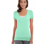 The Karissa V-Neck Tee features a semi-fitted shape that’s flattering for every figure. You can hit the gym with confidence while it hugs curves and hides common “problem” areas.